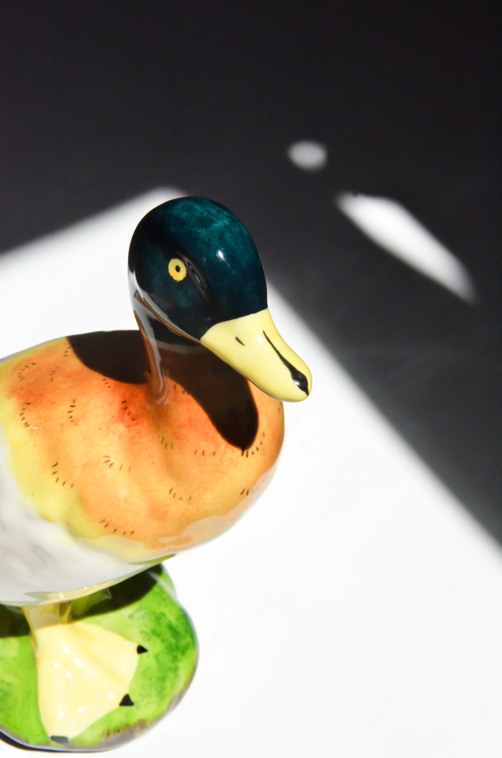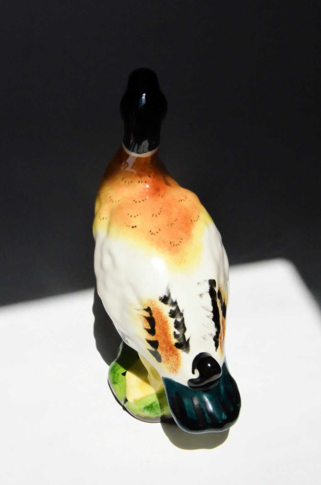 Bibelô em formato de marreco/pato, feito em porcelana pintada a mão. | Medidas: 27cm de comprimento x 10cm de largura x 20cm de profundidade.