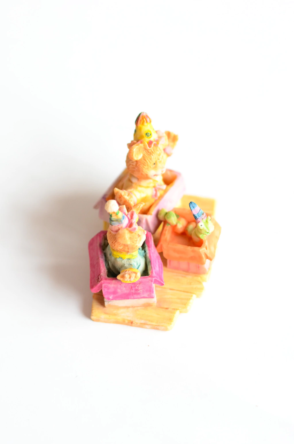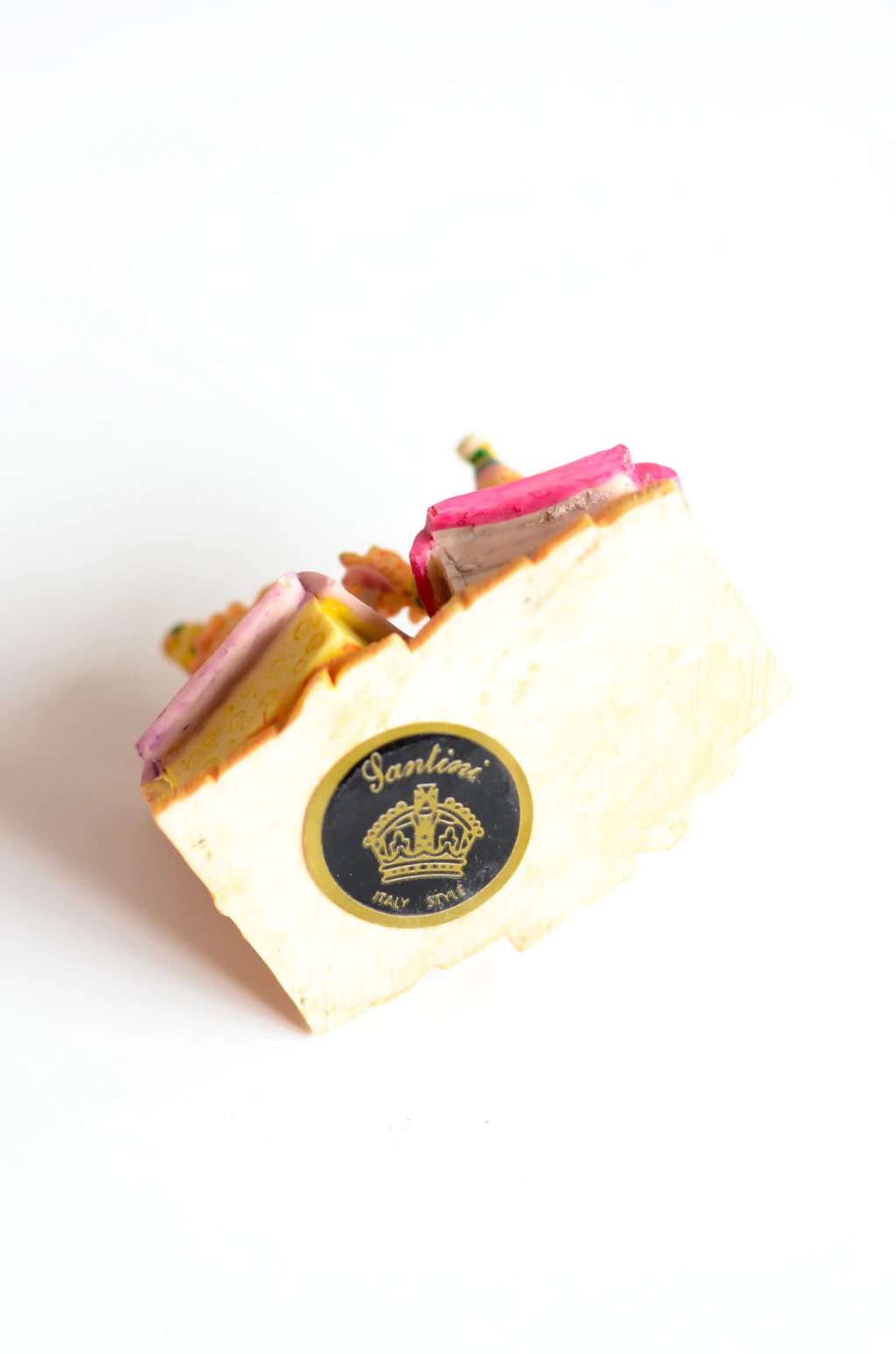 Bibelô dupla de ursinhos dentro de caixas de presentes aparentemente festejando, produzido pela marca italiana Santini, feito em resina super detalhada. Acompanha caixa original. | Medidas: 5,5cm de comprimento x 6cm de largura.