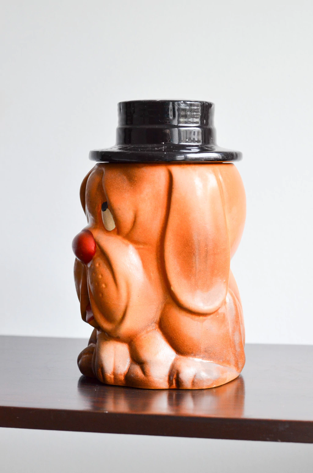 Biscoiteira/pote em formato de cachorro tristonho produzido pela marca Weiss, feita em porcelana ricamente detalhada e pintada a mão. | Medidas: 21,5cm de comprimento x 12cm de largura x 14,5cm de profundidade.