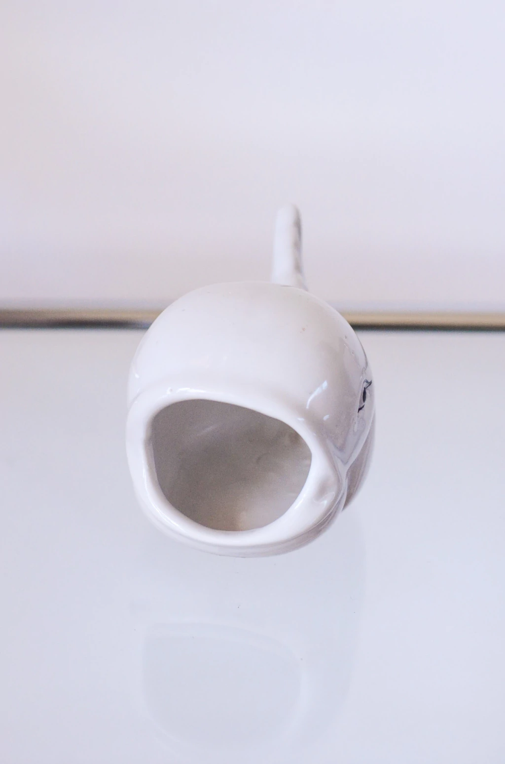 Cinzeiro em formato de baleia, feito em porcelana pintada a mão. | Medidas: 13cm de comprimento x 10cm de largura x 9cm de altura.