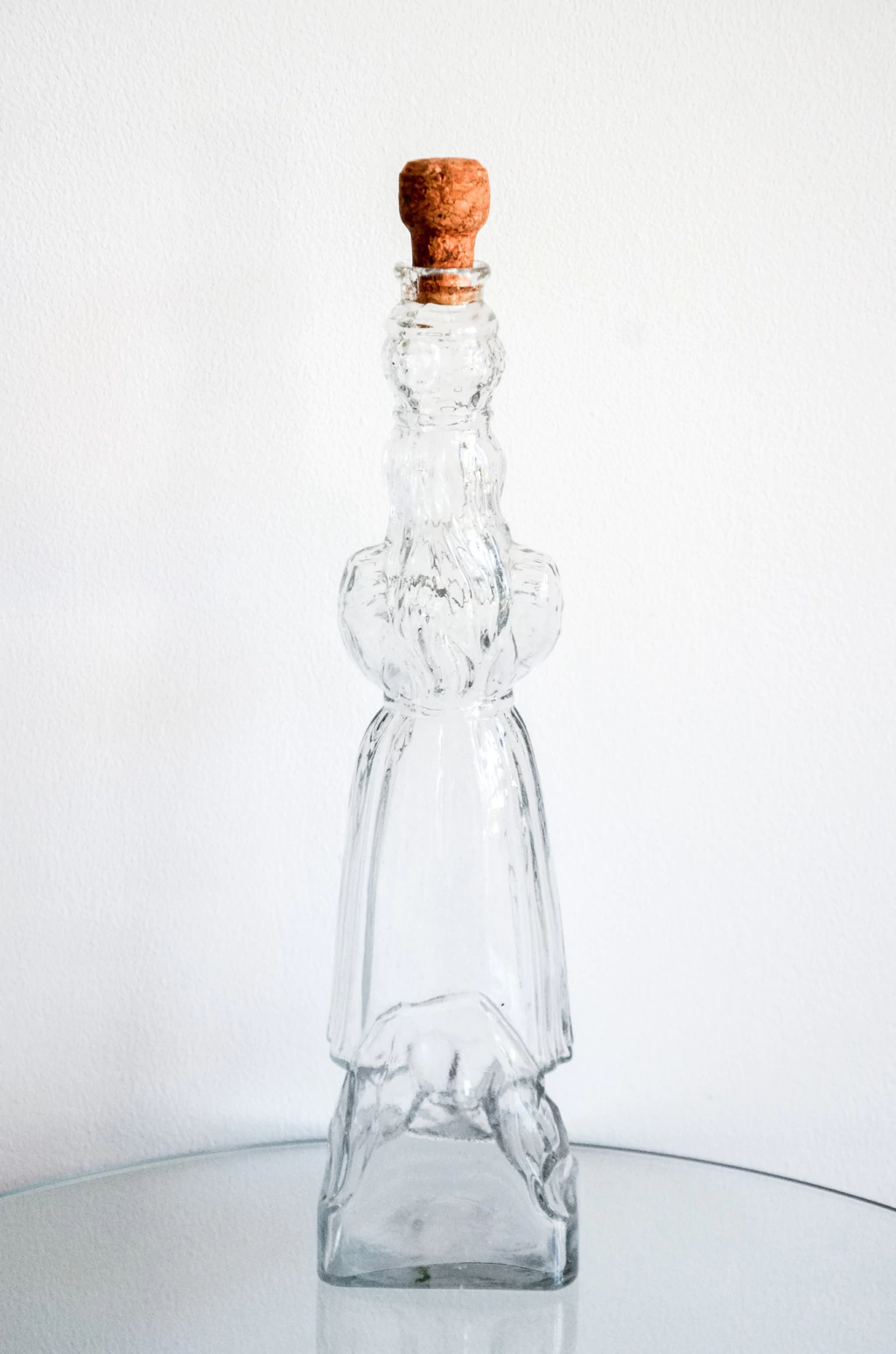 Garrafa em formato de figura feminina produzida na Rússia, feita em vidro ricamente detalhado. Acompanha rolha. | Medidas: 35,5cm de comprimento x 9cm de largura x 34cm de profundidade.