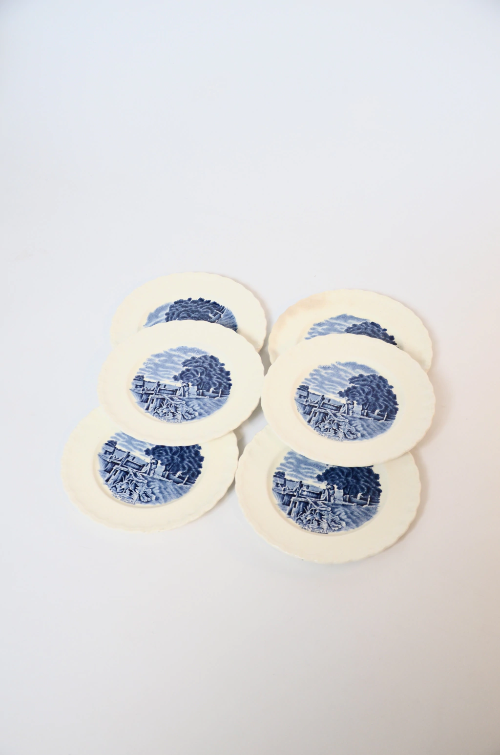 Jogo de 6 pratos com a pintura "A Boat Passing a Lock", feitos em porcelana pela marca inglesa Grindley England. | Medidas: 17,5cm de comprimento x 1,5cm de profundidade.