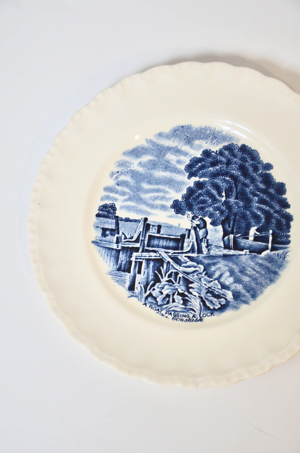 Eu amo as histórias que as pinturas em louças inglesas contam, cenários ricamente detalhados em que prendem o olhar por minutos e que parece que cada vez que você olha, acha mais um elemento novo. Essa especificamente é a releitura de uma pintura chamada "A Boat Passing a Lock" do artista John Constable.