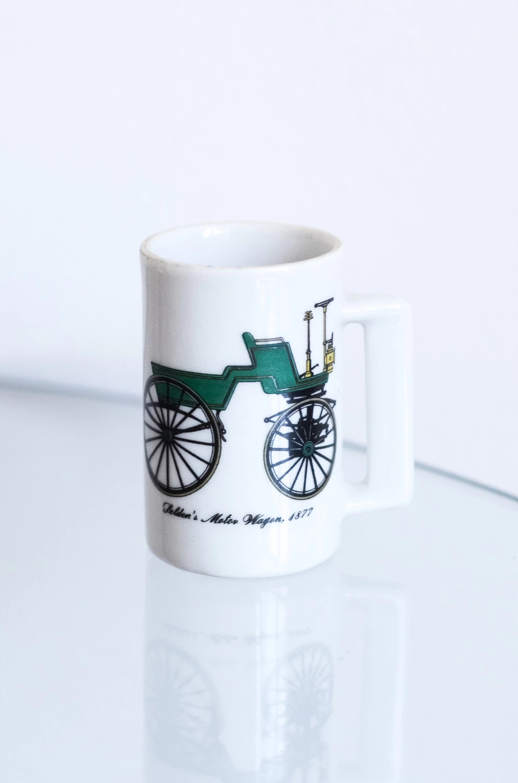 Jogo de 5 xícaras de café com ilustração de carros antigos produzido pela marca brasileira Porcelana Saler, feitas em porcelana assinada. | Medidas: 6,5cm de comprimento x 5,5cm de largura x 6cm de profundidade.