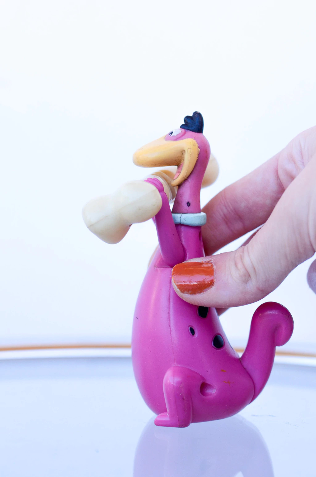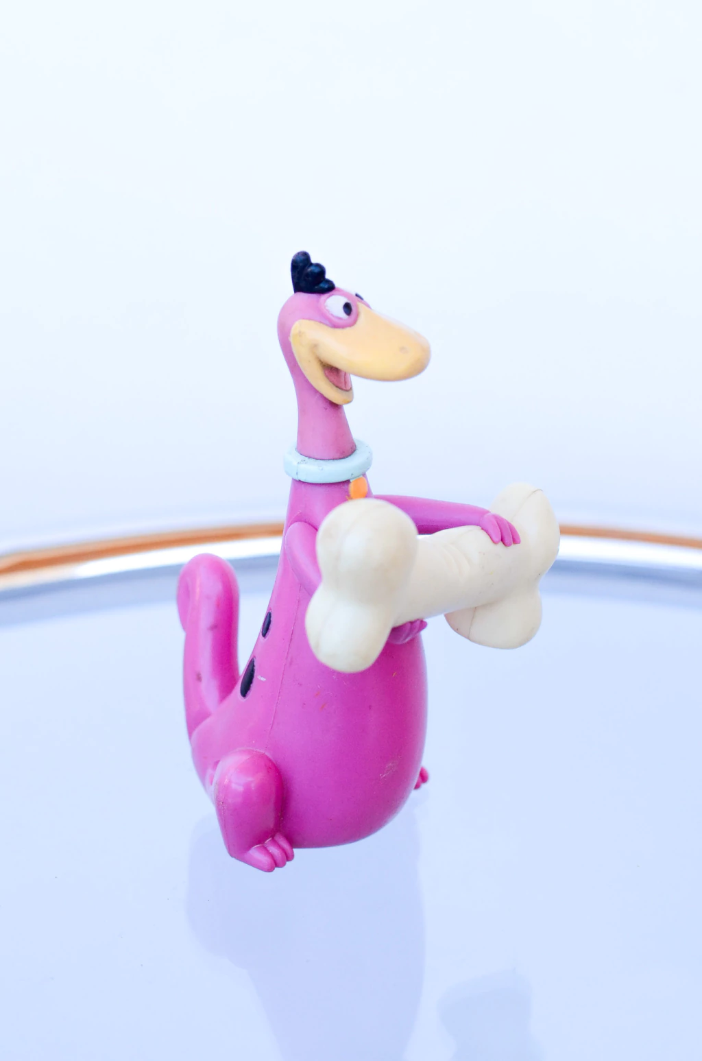 Boneco em formato do personagem Dino do desenho animado "Os Flinstones" produzido como brinde em 2008 pelo Mc Donald's, feito em plástico rígido. Os braços se movêm pra cima, levando o osso pra perto da boca. Contêm leves desgates em algumas partes da pintura. | Medidas: 11,5cm de comprimento x 5cm de largura x 7,5cm de profundidade.